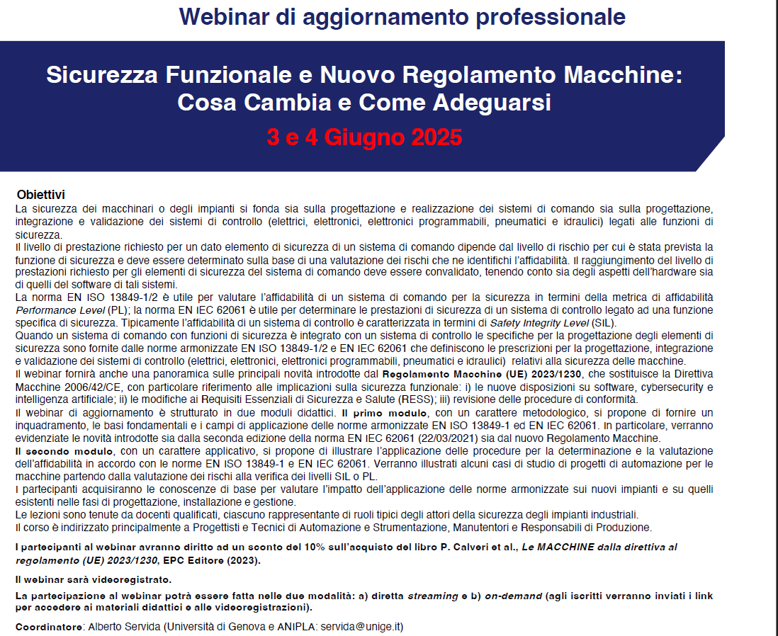 Anipla – Webinar – Sicurezza Funzionale e Nuovo Regolamento Macchine: Cosa Cambia e Come Adeguarsi