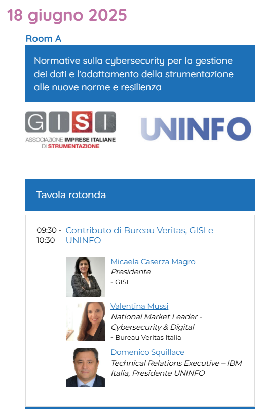 G.I.S.I., Bureau Veritas Italia e UNINFO, il 18 giugno dalle 9:30 alle 10:30 – Room A, terranno la Tavola Rotonda: