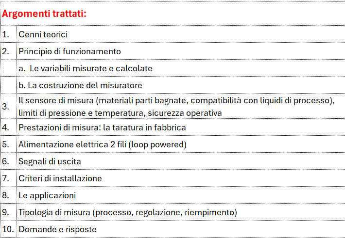 Nel corso del webinar sui misuratori di portata Vortex verranno trattati di seguenti argomenti.